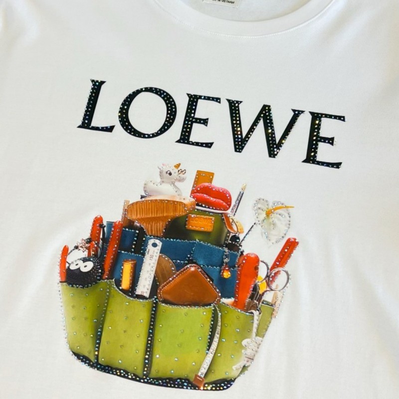 LOEWE クラシックレターカラーダイヤモンドクラフト半袖Tシャツ