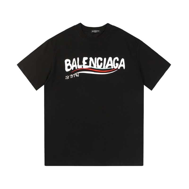BALENCIAGA 新作240gダブルヤーンファブリック32コットンパリ半袖ブラックTシャツ