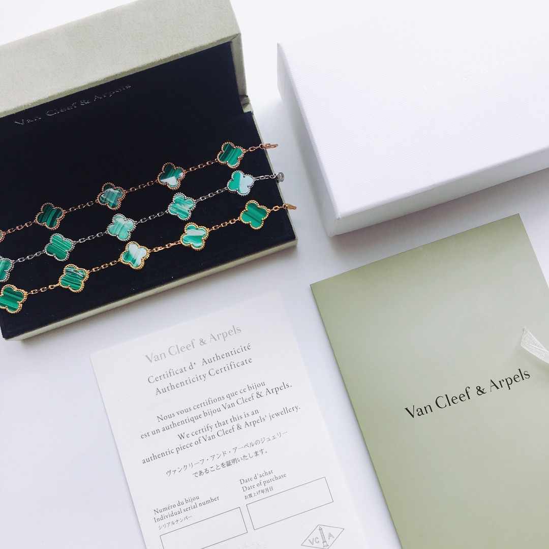 Van Cleef & Arpels ヴァン クリーフ&アーペル 四葉のクローバー 天然孔雀緑 中号ブレスレット P275