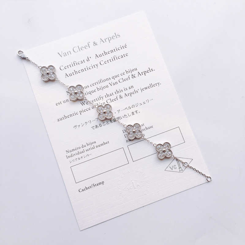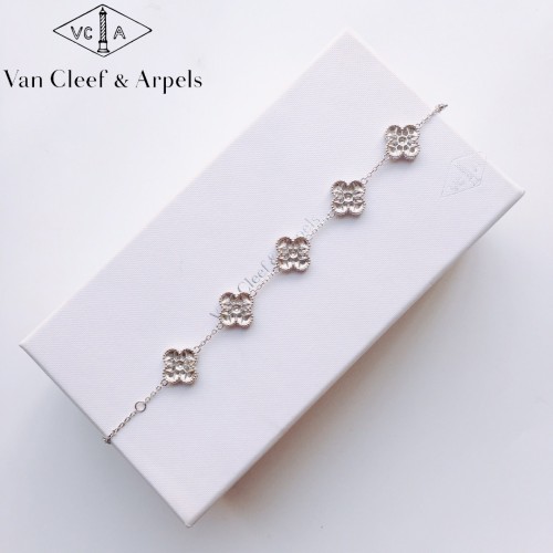 Van Cleef & Arpels ヴァン クリーフ&アーペル 四叶草五花手链 满钻镶钻石 纯银镀18k玫瑰金/白金