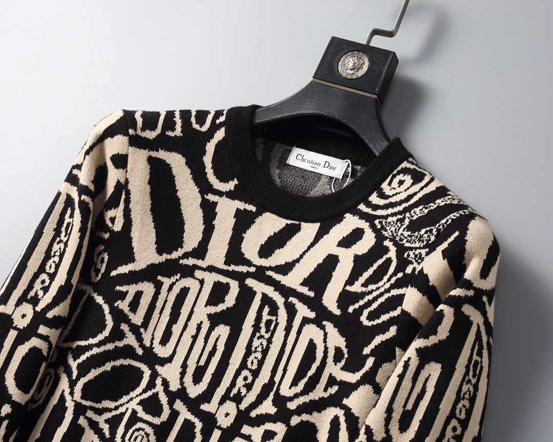 Dior 新しい冬のオールオーバープリントプルオーバールーズラウンドネックセーター