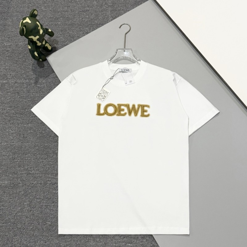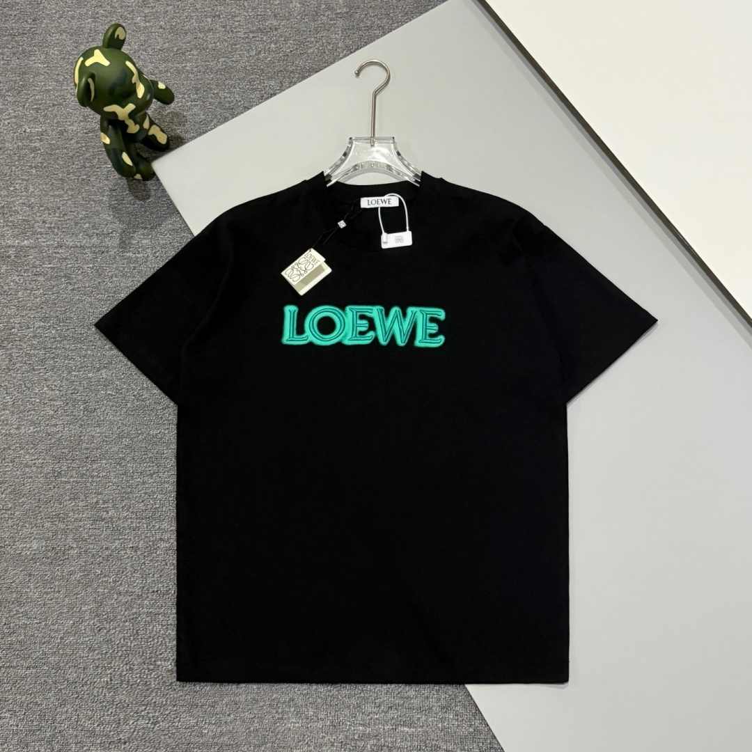 ロエベ 夏の新作 刺繍ロゴ ラウンドネック ショートTシャツ