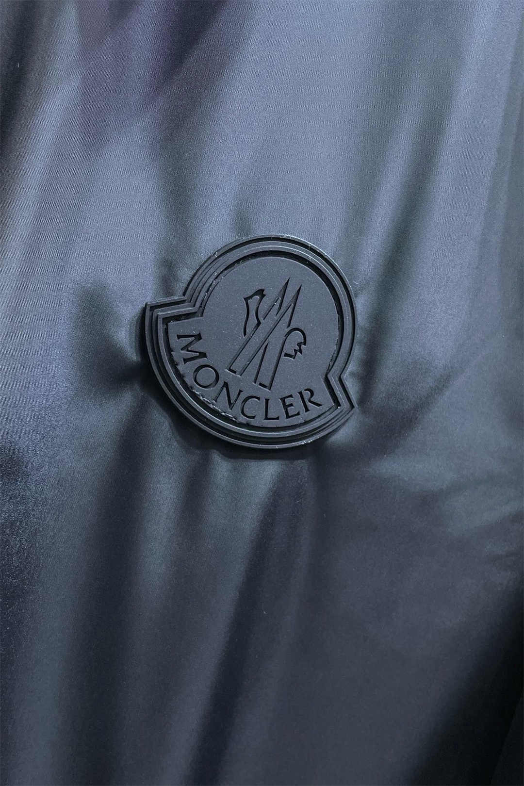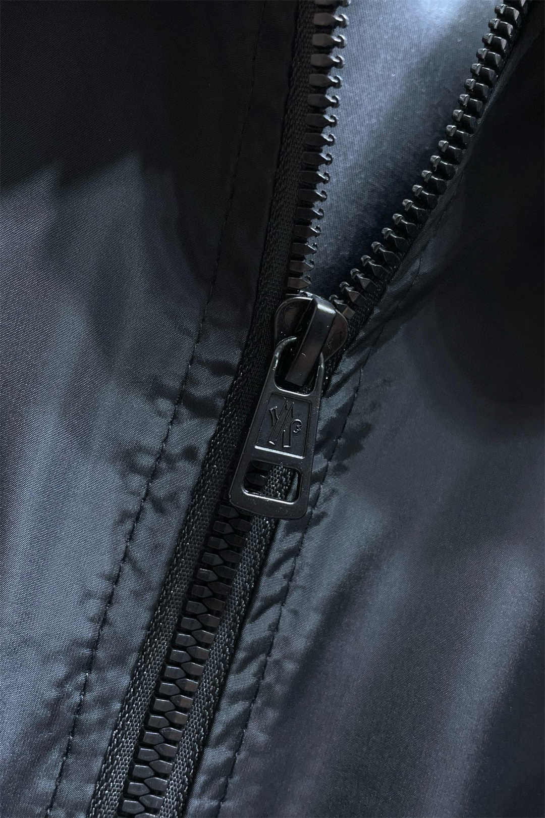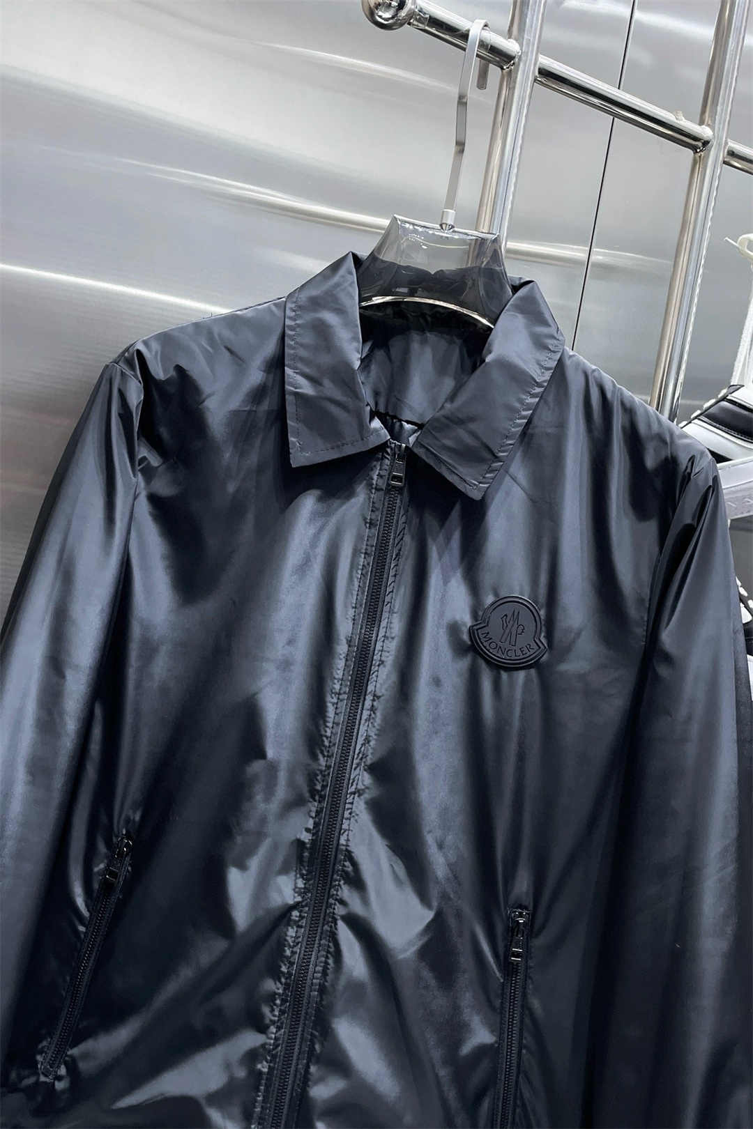 MONCLER控えめなピュアブラックロゴスモールラベルジッパージャケット
