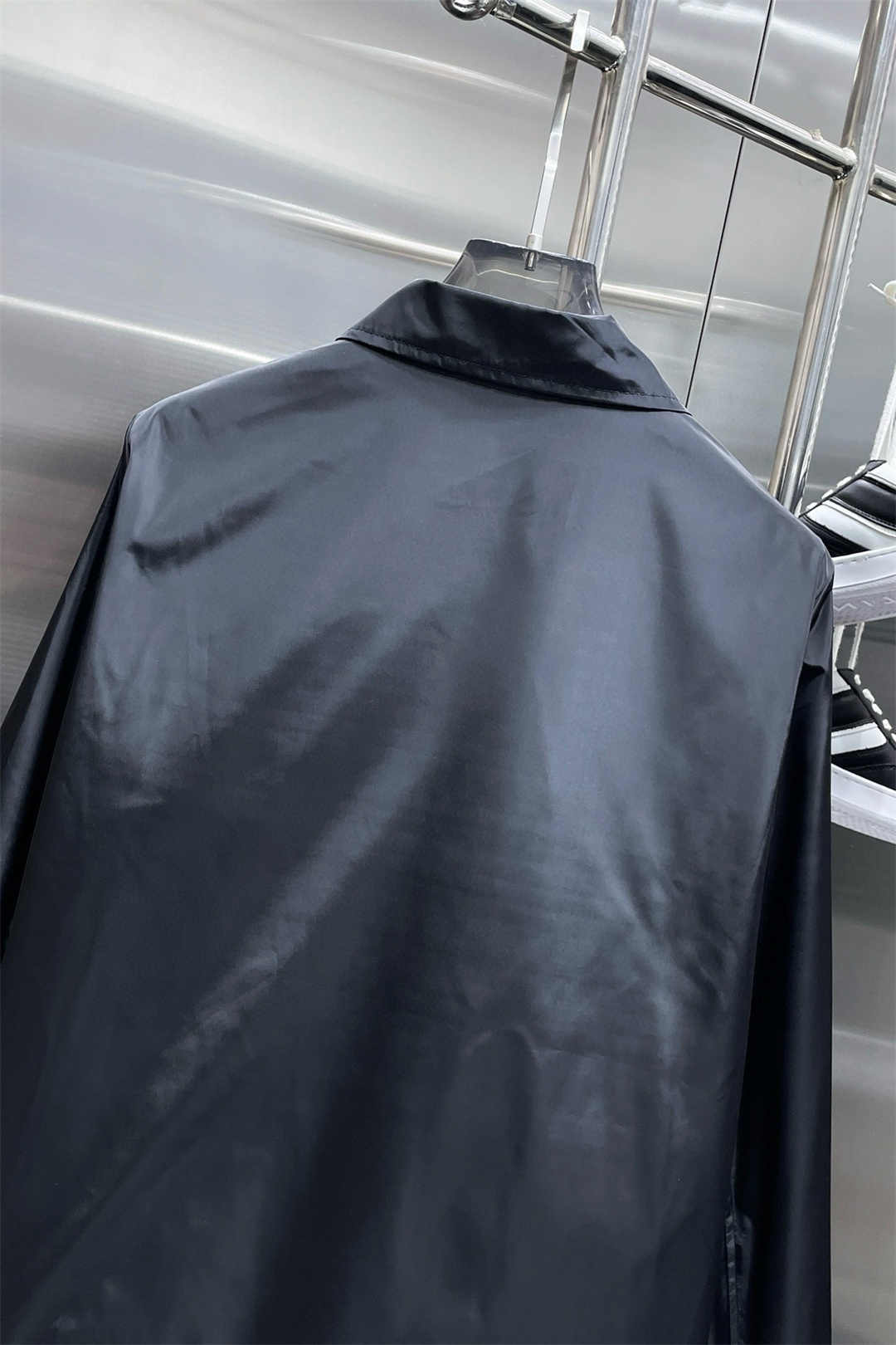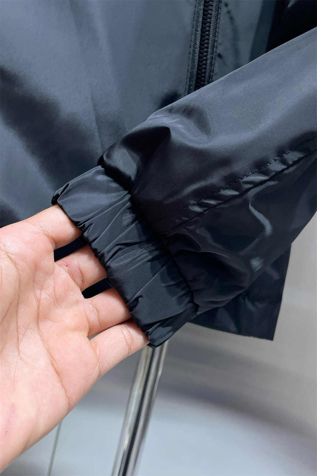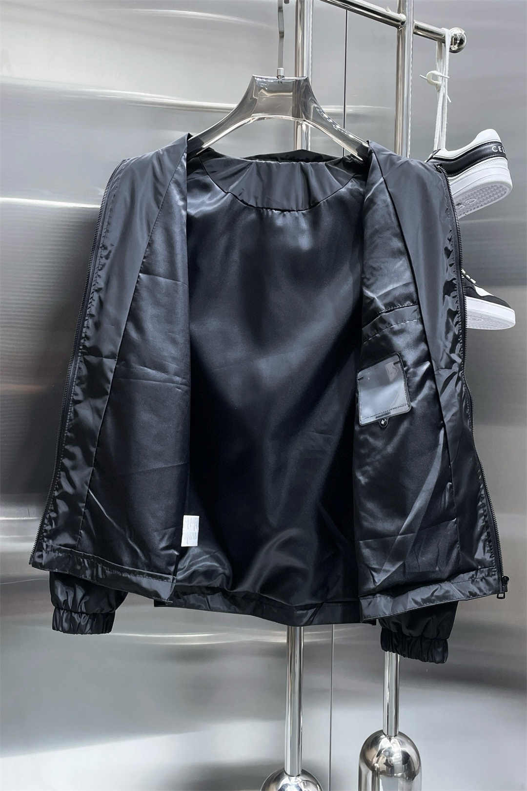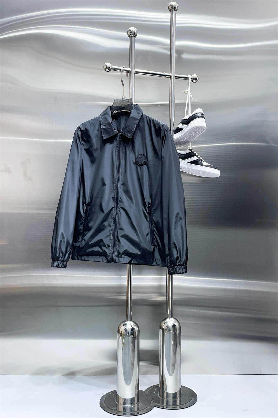 MONCLER控えめなピュアブラックロゴスモールラベルジッパージャケット