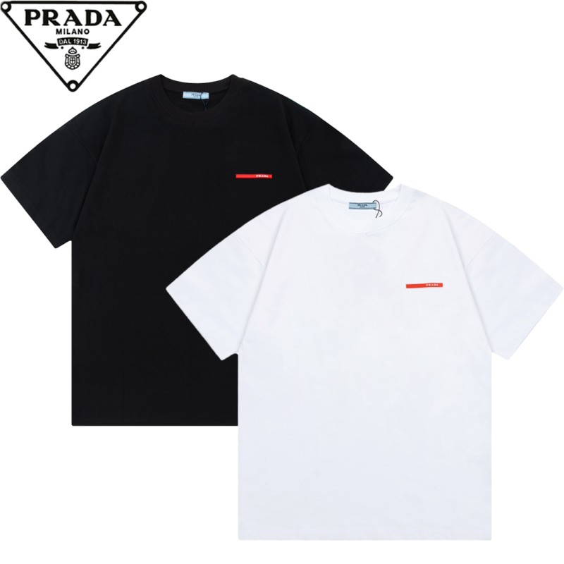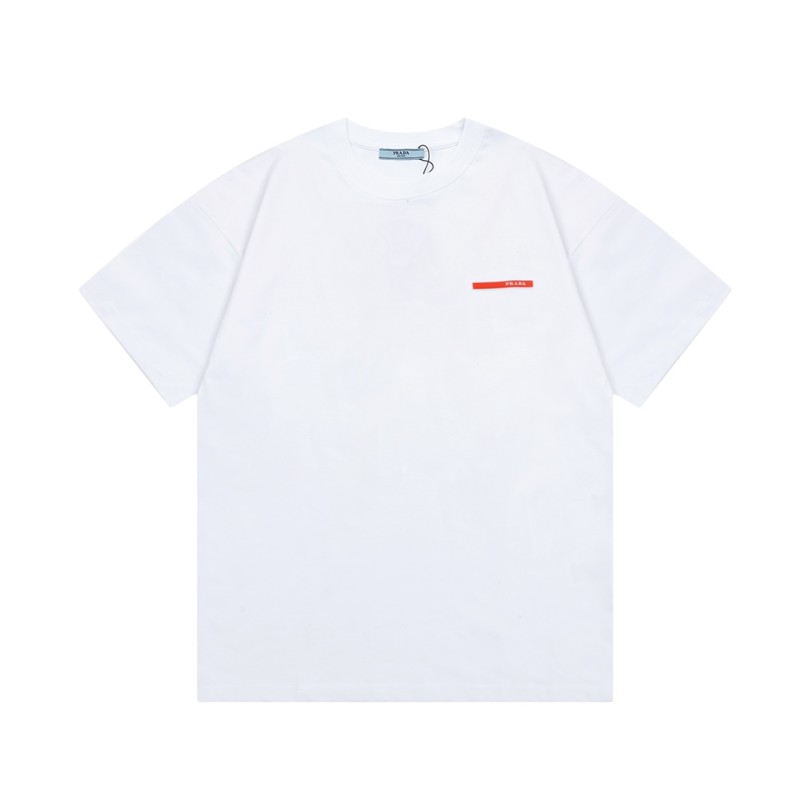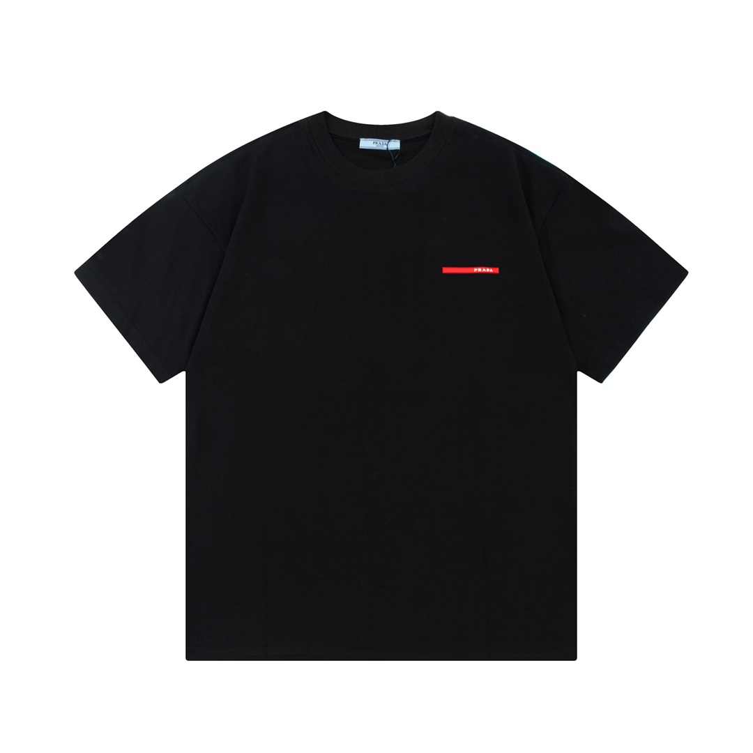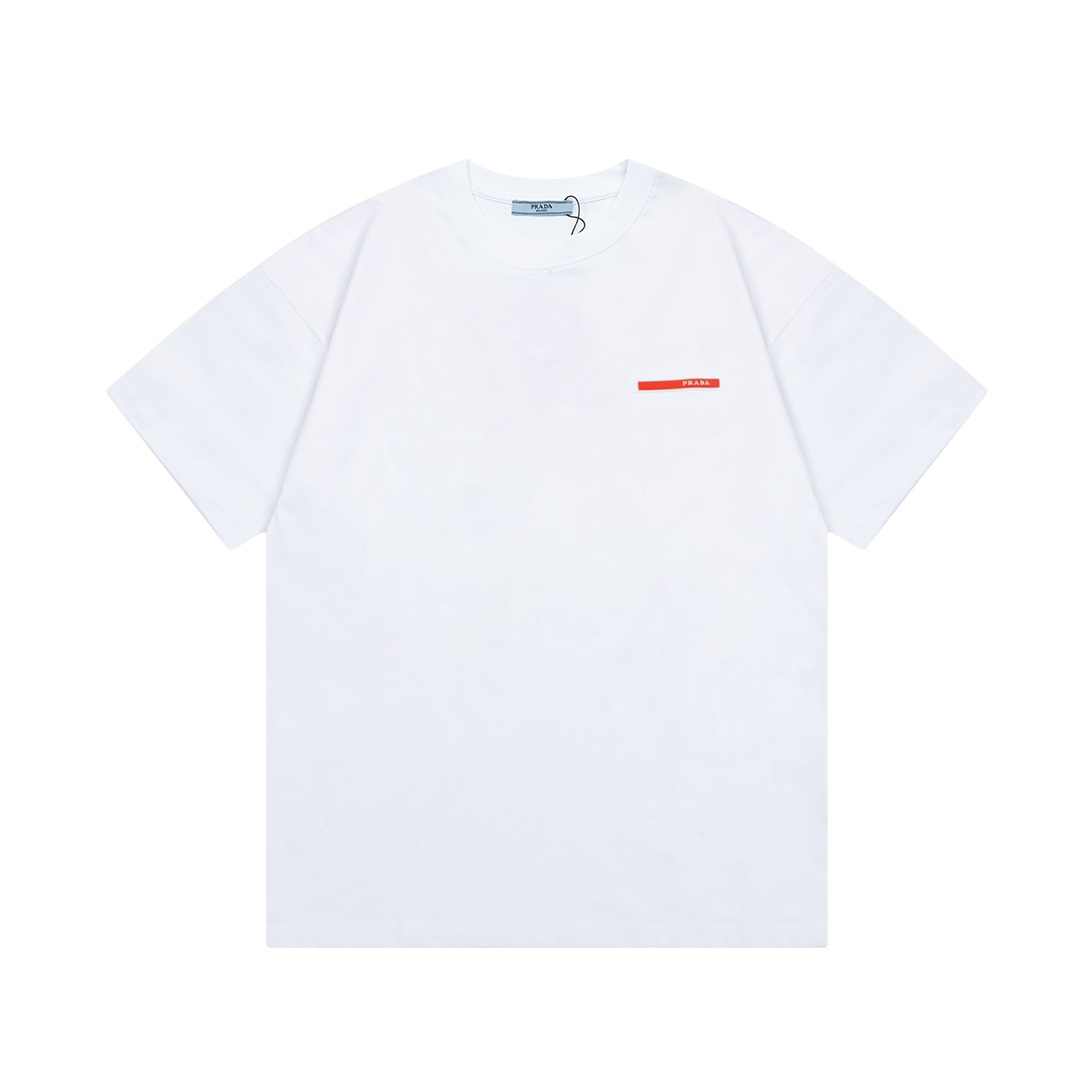 PRADA プラダ クラシック レッド 小文字 ロング ストライプ 3D オフセット プリント 半袖 T シャツ