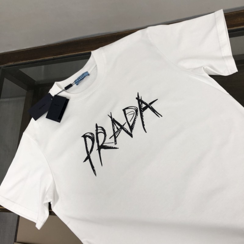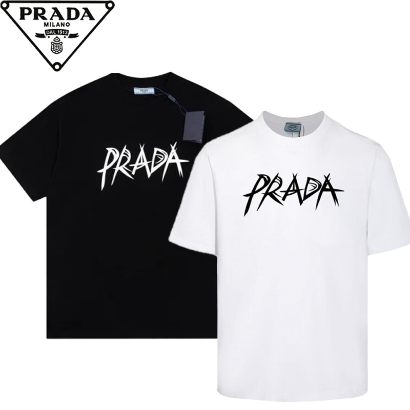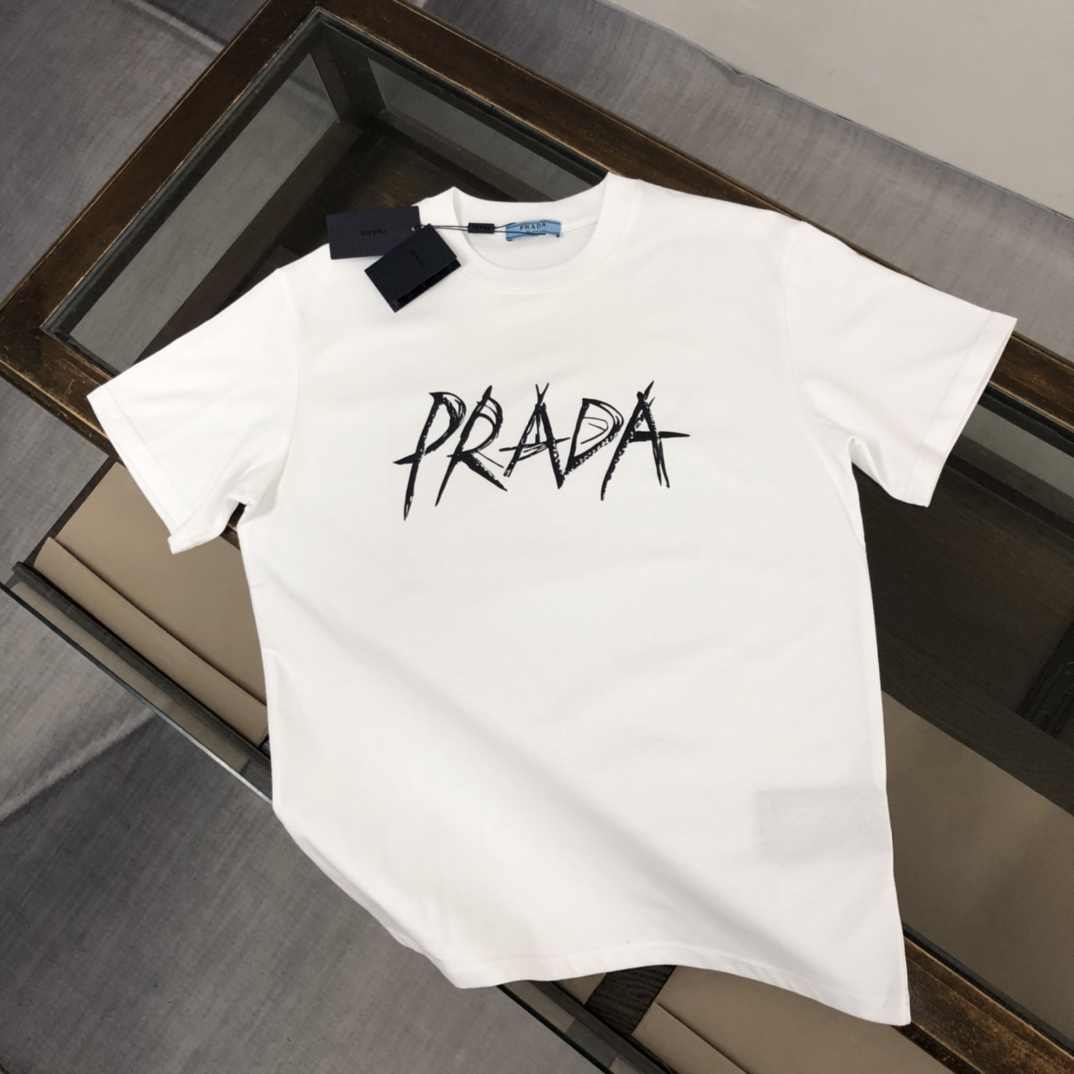PRADA PRADA クラシックファッション 黒と白 カジュアル ラウンド 半袖 Tシャツ