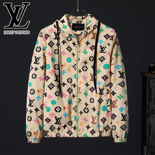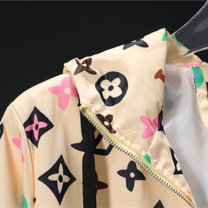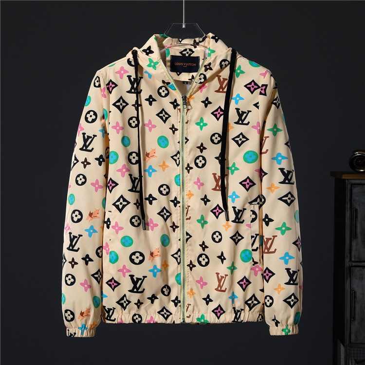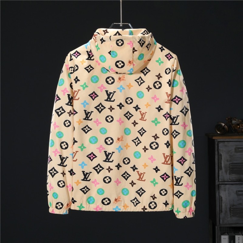 Louis Vuittonフルロゴとカラフルなパターンの巾着フード付きジャケット
