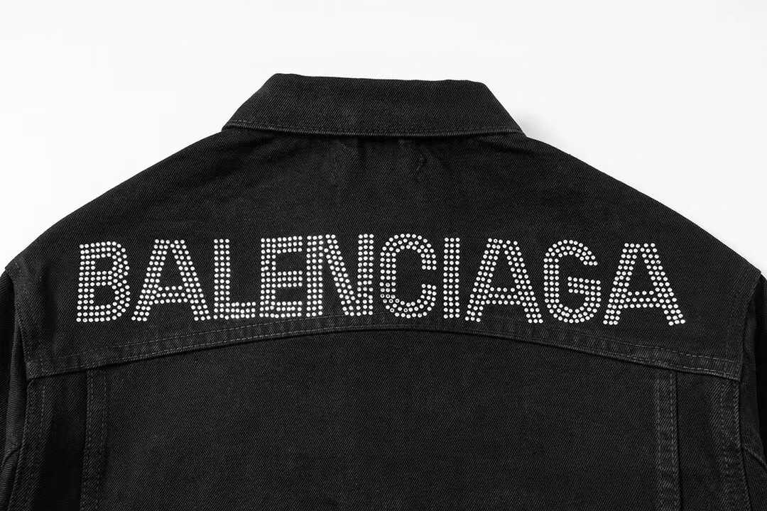 バレンシアガ クリスタル装飾ホット ダイヤモンド デニム ジャケット