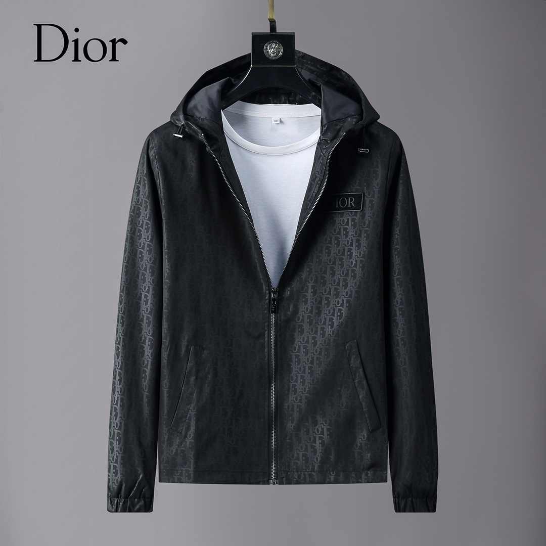 Dior 秋冬フード付きブラックスリムコート