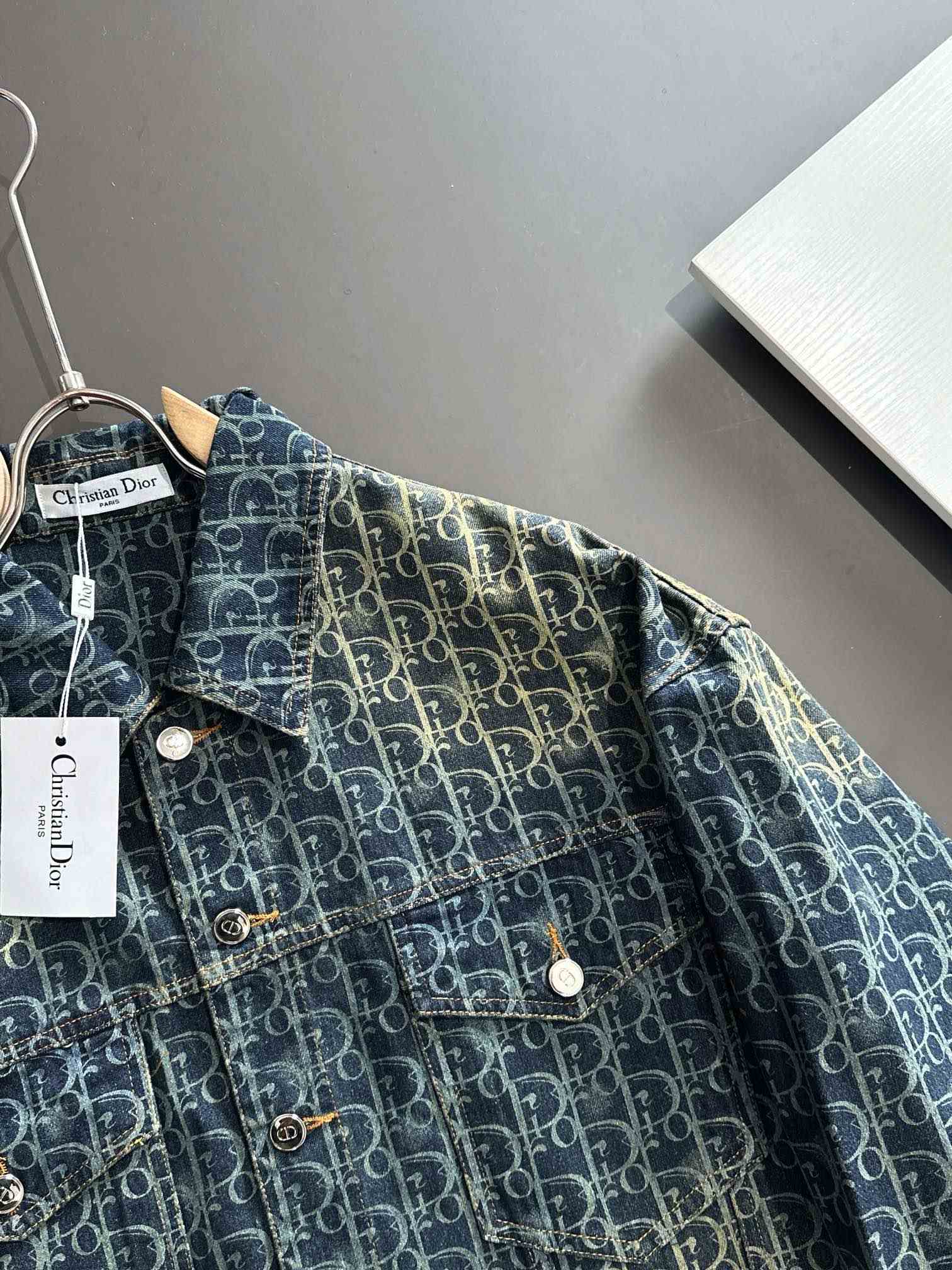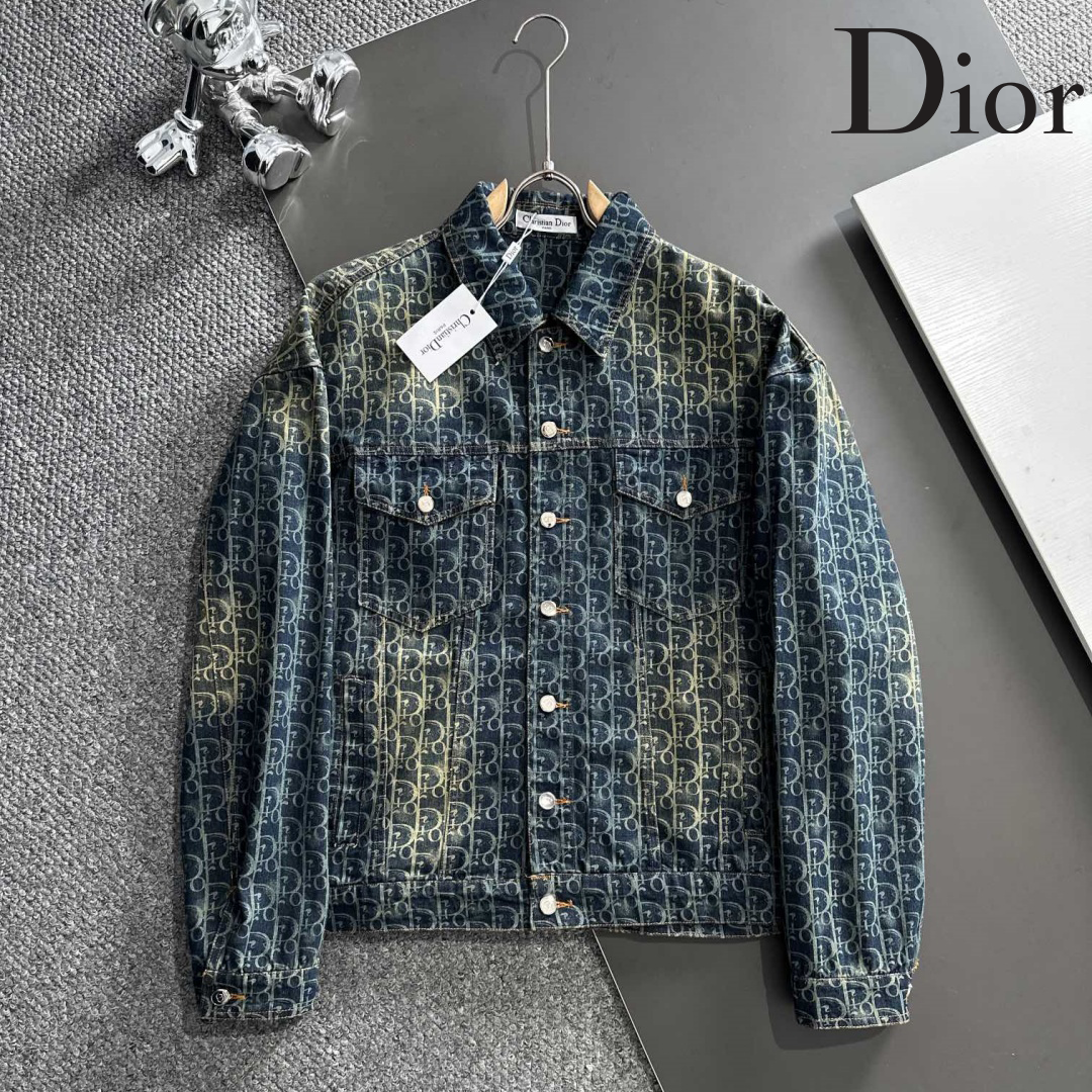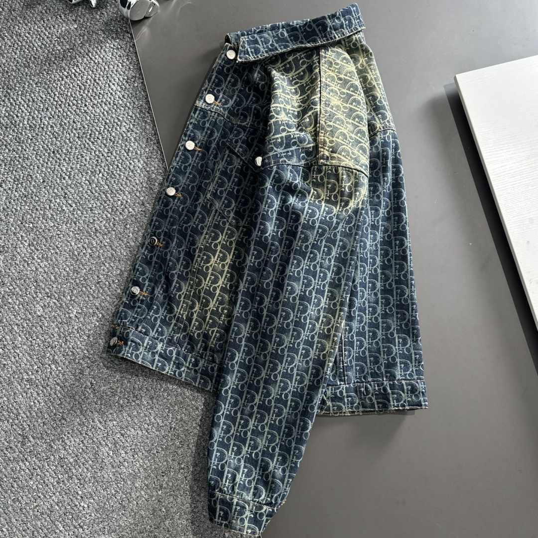 Dior オールドマネーウォッシュスタイルロゴをプリントしたレトロなコーティングデニムジャケット